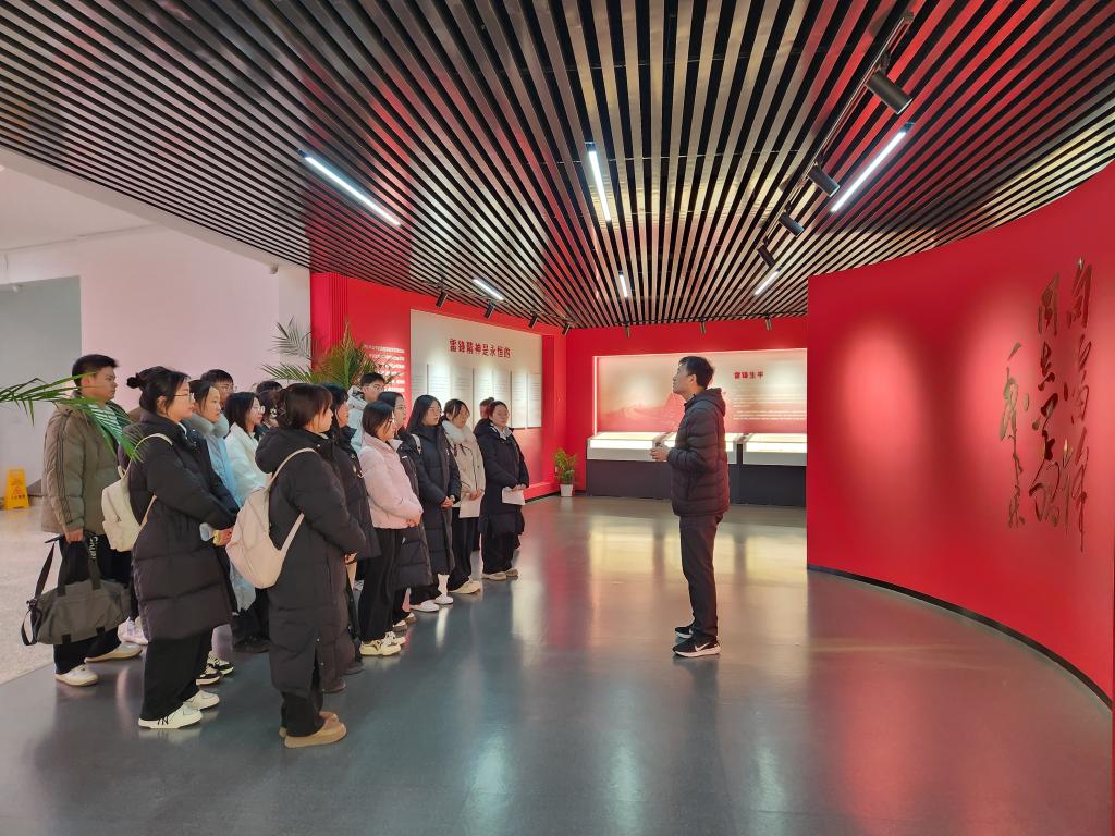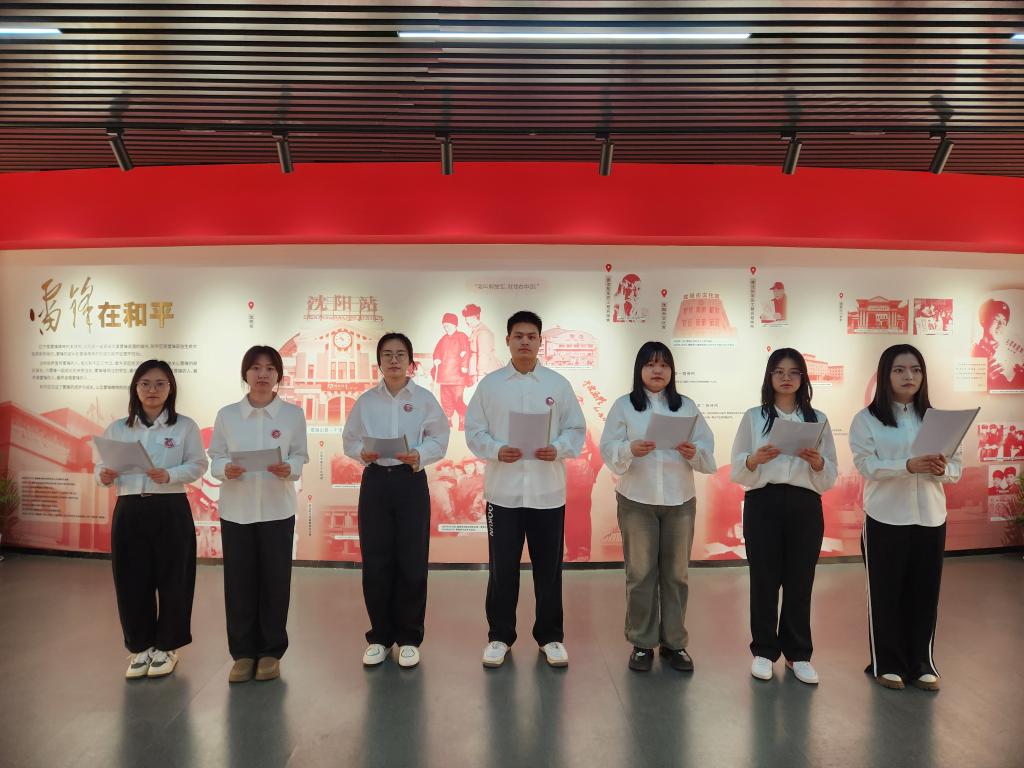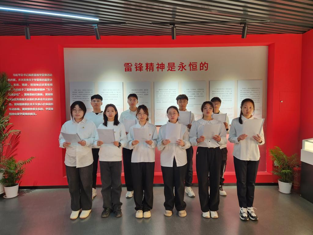 参观过程中,教研室为同学们设计了诗歌朗诵和演唱红歌等情景化、沉浸式体验教学环节,在激昂的朗诵声与嘹亮的歌声中,崇尚英雄、学习英雄、争做英雄的强烈意愿在同学们心中油然而生,大家以真挚的情感,厚植英雄情怀,让雷锋精神光芒更加耀眼夺目。活动最后,学生代表带领全体同学庄严宣誓。铮铮誓言,表达了同学们以雷锋为榜样、坚定理想信念、践行社会主义核心价值观的决心。这不仅是一种简单的言语承诺,更是将雷锋精神融入日常学习生活中的行动宣言。